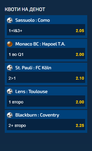 Вкупна квота од 38.7 ќе добиете ако на ист тикет ги уплатите петте Квоти на денот кои ги нуди Sport Life.