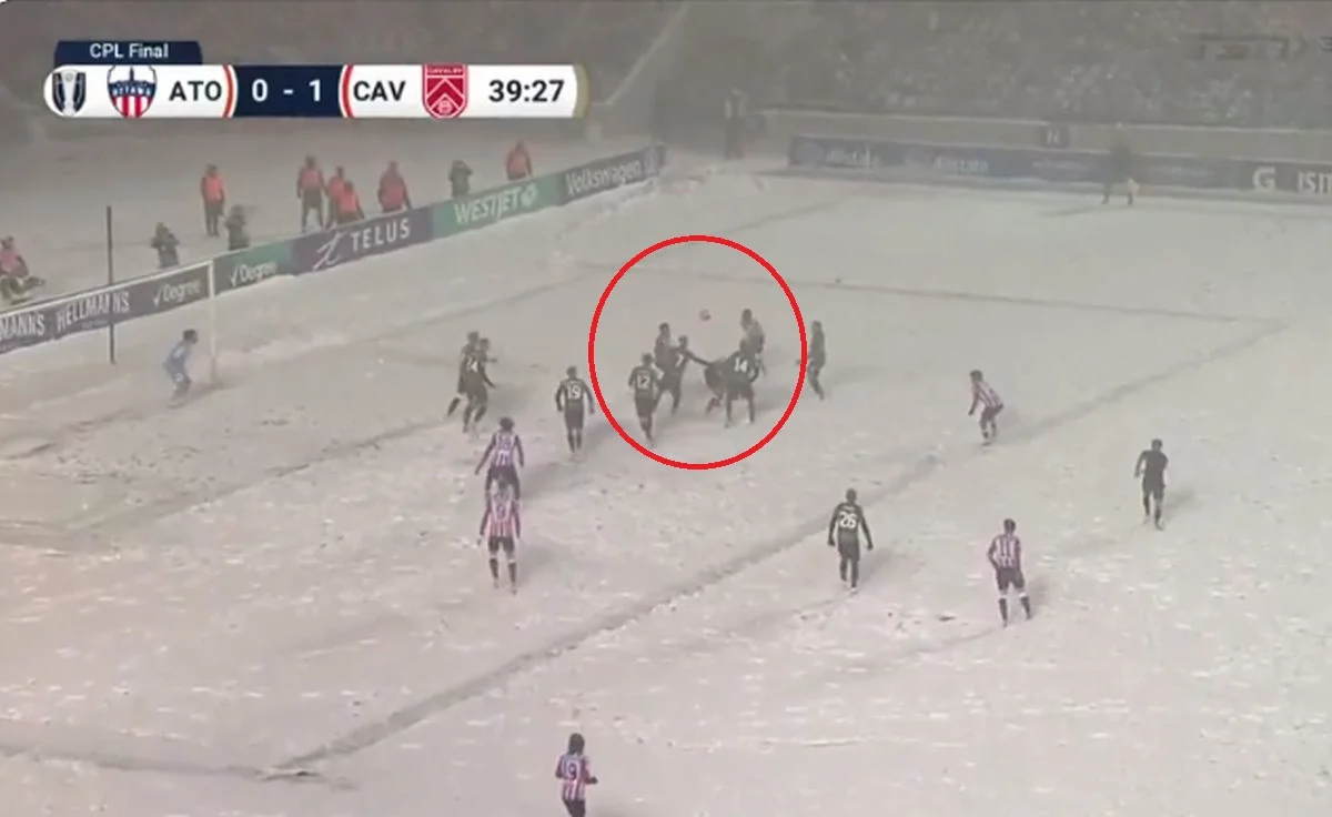Фудбалот во Канада не е најгледан спорт, но тоа што се случи на финалето меѓу Атлетико и Кавалри, кој одлучуваше за шампионот во земјата на стадионот ТД Плејс во Отава, останува за прераскажување. На трибините имаше речиси 25.000 гледачи, а се играше во речиси невозможни снежни услови.