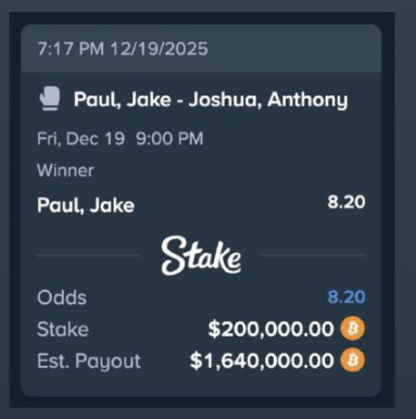 Дрејк објави фотографија со која се пофали дека уплатил 200.000 долари на победа на Пол кој беше аутсајдер. Можната добивка му беше 1,64 милиони долари.