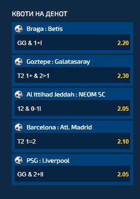 Брага го пречекува Бетис во мечот од Лигата на Европа, а ако двете екипи постигнат гол и има барем еден погодок во првото полувреме, квотата на денот е 2.20.