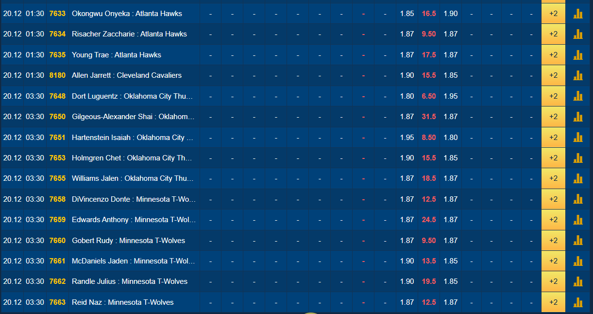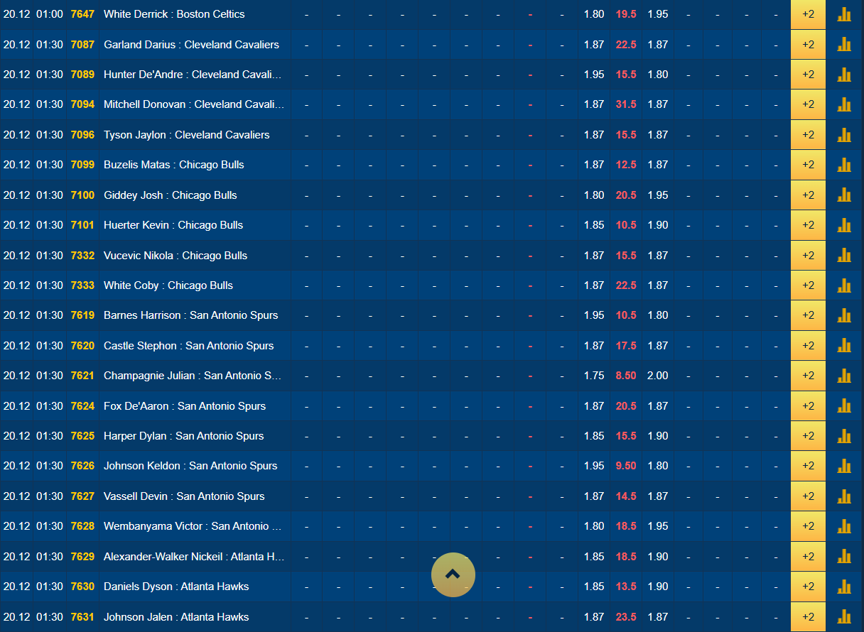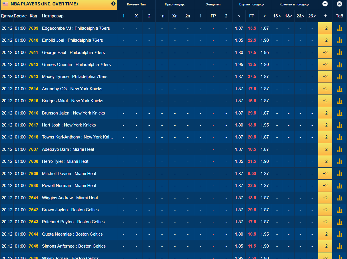 Во понудата за „плус-минус“ играта има дури 56 кошаркари. Џоел Ембид е на границата од 22,5 поени, а на истата граница е и Норман Пауел. Џелен Браун од Бостон да биде во „плус поени“ мора да постигне барем 30.