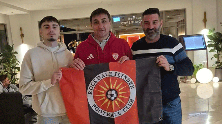 Дел од македонската експедиција им се заблагодари на поддршката и позираше со дресови и знамиња на клубот Рокдејл Илинден.