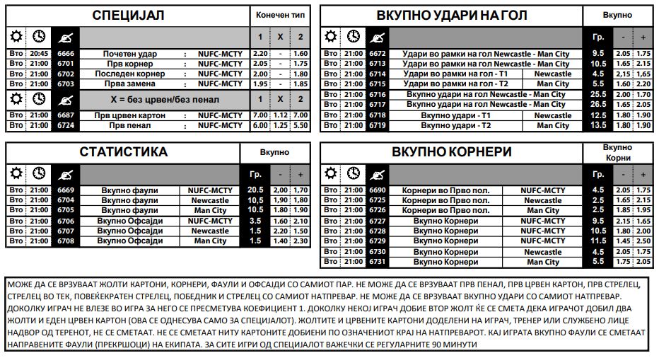 Сезонава Њукасл на свој терен веќе еднаш го победи Сити, и тоа со 2:1 во првенството, а сите три погодоци беа постигнати во второто полувреме. Сега, главен фаворит за прв стрелец на гол вечера е Ерлинг Халанд, а тука се и Ник Волтмејд, Фил Фоден, како и Харви Барнс, кој го постигна првиот гол на нивната последна пресметка.
