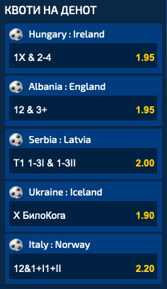 Квотата од 1.90 за натпреварот на Украина и Исланд ќе биде добитна доколку на полувремето или на крајот од мечот биде нерешено.