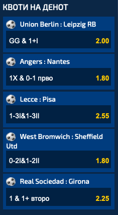 Понудената квота од 2.00 за мечот помеѓу Унион Берлин и Лајпциг ќе биде добитна само ако се затресат двете мрежи, но и ако има најмалку еден гол во првото полувреме.