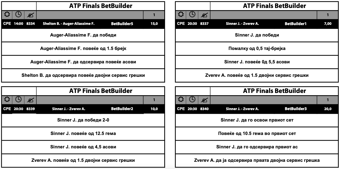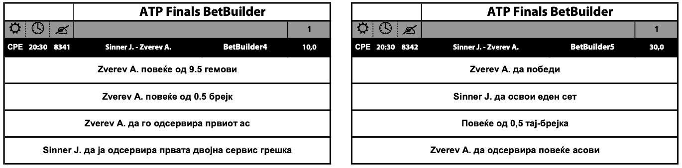 На завршниот АТП-турнир во Торино се играат натпреварите од второто коло од групата „Б“, а двата меча се дел од Бет билдер понудата на Sport Life со квоти кои достигнуваат и неверојатни 30.00.