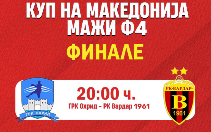 Најпријатното изненадување сезонава во македонскиот ракомет, ГРК Охрид е на прагот да испише историја. Тимот на Охрид вечерва од 20 часот во салата „Парк“ во Струмица ќе игра во финалето на Купот против Вардар. Ако за Охрид ова е историски меч, тогаш за Вардар е нешто на кое се навикнати.