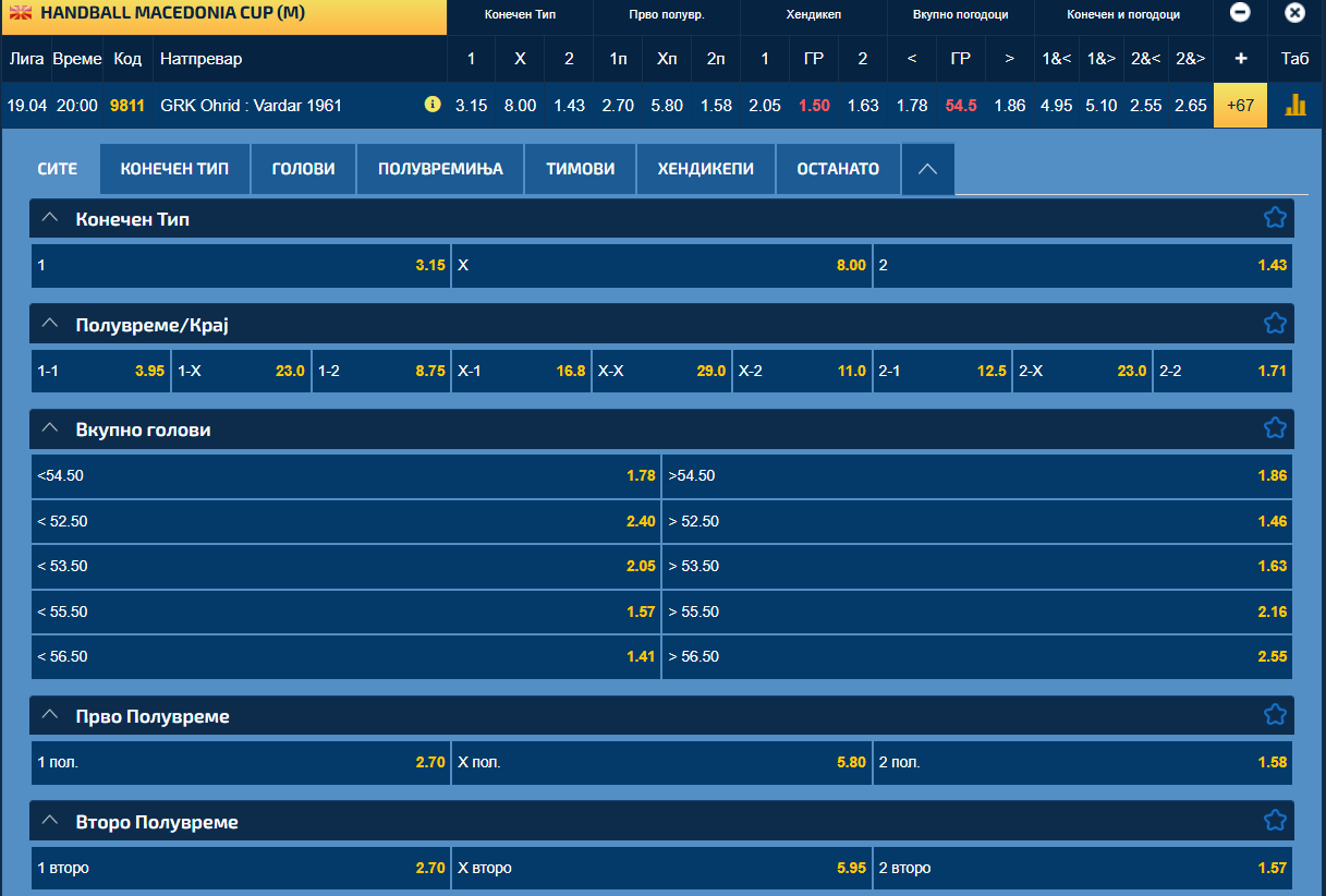 Според коефициентите во Sport Life, Вардар е голем фаворит за победа. Ако се погледнат меѓусебните дуели Вардар е апсолутен фаворит и победил во сите 28 натпревари против Охрид.