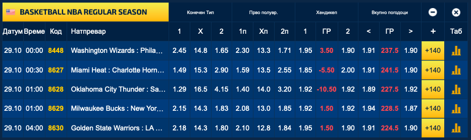 Ноќната НБА-програма содржи пет меча и сите може да ги најдете во богатата понуда на Sport Life. Оклахома има максимален ефект од четири победи на четири меча на врвот од Западната конференција, а според квотите во Sport Life, е голем фаворит така да остане и по мечот против Сакраменто.