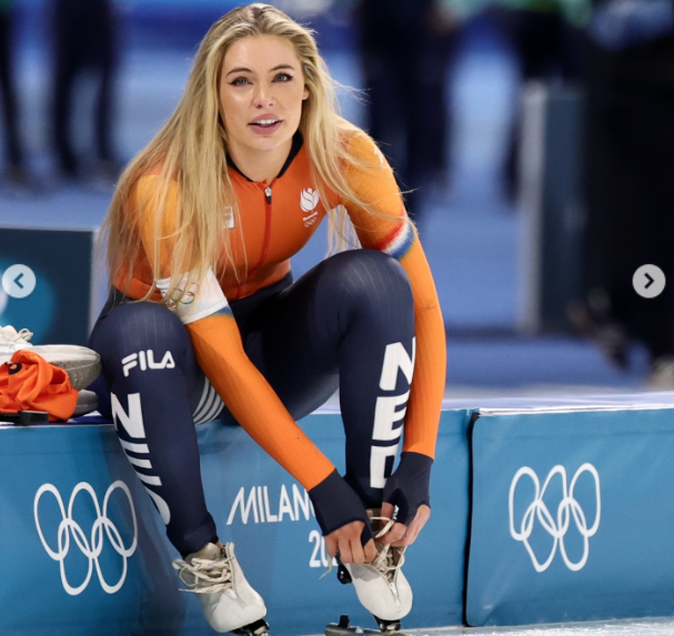 Иако Холандската федерација за брзо лизгање соработува со брендот „Фила“, таа е приватно спонзорирана од „Најки“. Така спортски градник од американскиот производител беше видлив под нејзиниот аеродинамичен тркачки костум, а по преминувањето на целта, редоследот беше јасен: прво откопчајте го костумот.