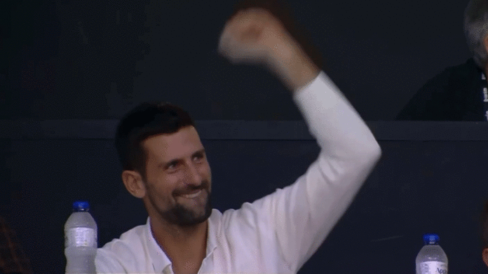 Во ложата на салата „Мир и пријателство“ во атинското предградие Пиреа беше српскиот тенисер кој овојпат доби овации од публиката, за разлика од синоќа кога беше исвиркан од фановите на Панатинаикос во Атина. Новак е навивач на Црвена ѕвезда чии поддржувачи се збратимени со тие на Олимпијакос, затоа беше и негодувањето синоќа кога се појави на евролигашки меч на Панатинаикос.