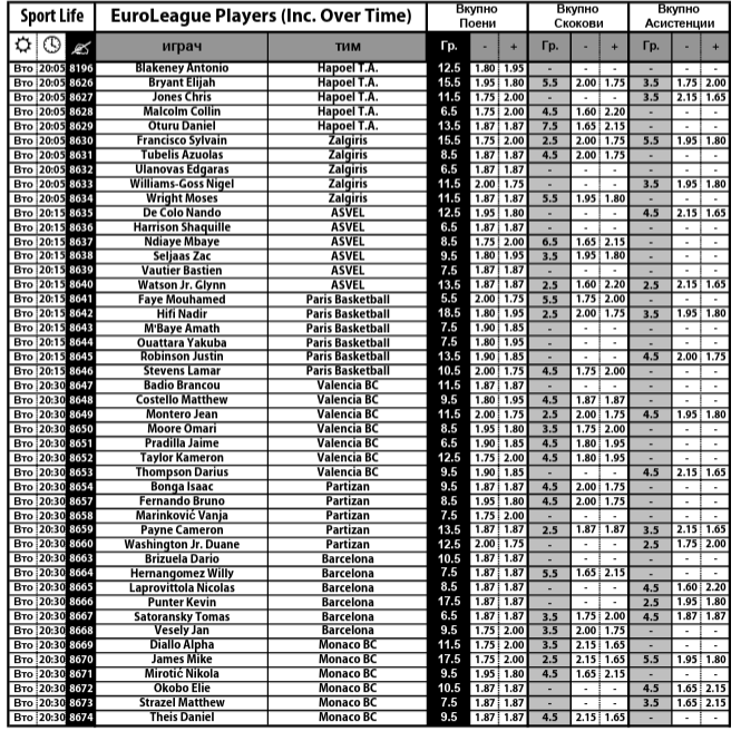 За Валенсија игра новопечениот македонски репрезентативец Омари Мур, кој го има на листата на кошаркари на кои може да се обложите колку поени или скокови ќе постигнат. Има и понуда на асистенти, како и на број на погодени тројки и направени фаули од страна на тимовите.