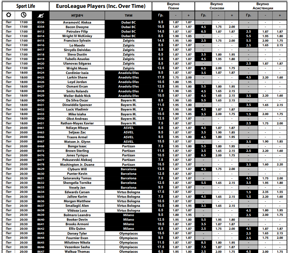 Над 50-мина кошаркари има во понудата за „плус-минус“ поени, но има и опција да се одигра „плус-минус“ и за бројот на скокови и асистенции.