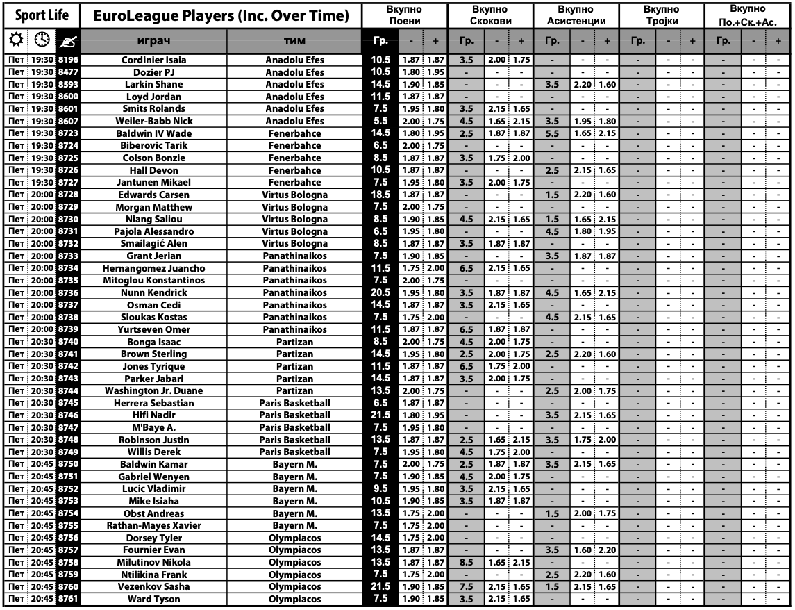 Дел од богатата евролигашка понуда во Sport Life се и кошаркарите со најпопуларната игра – „плус-минус“, која може да се одигра на поени, скокови и асистенции. Комплетната понуда може да ја најдете ТУКА.