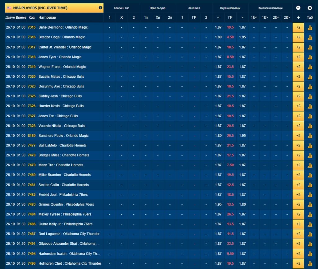 Покрај стандардните квоти, има огромна понуда и на ефектот на кошаркарите. Дури 50 кошаркари можете да ги одиграте во омилената игра „плус/минус поени“.