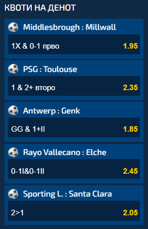 Мидлсборо да не загуби на свој терен од Милвол во меч на којшто во првото полувреме ќе нема повеќе од еден гол се вреднува со квота од 1.95.