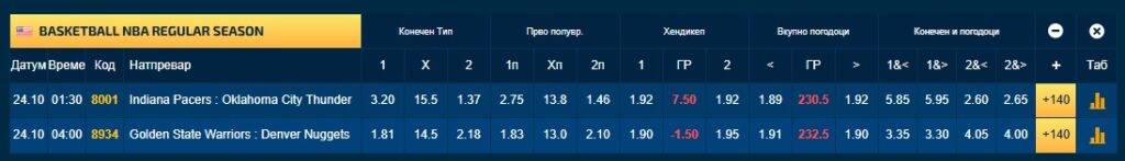 Се разбира, можете да се одлучите да одиграте и на омилениот тим. Оклахома сити тандер е сериозен фаворит иако игра на гости против Индијана пејсерс.