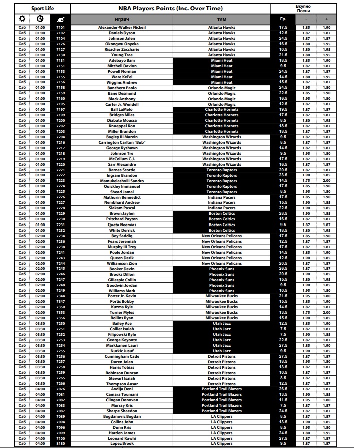 Покрај стандардните квоти, тука е омилената игра „плус/минус поени“ на поентерскиот ефект на 84 кошаркари.