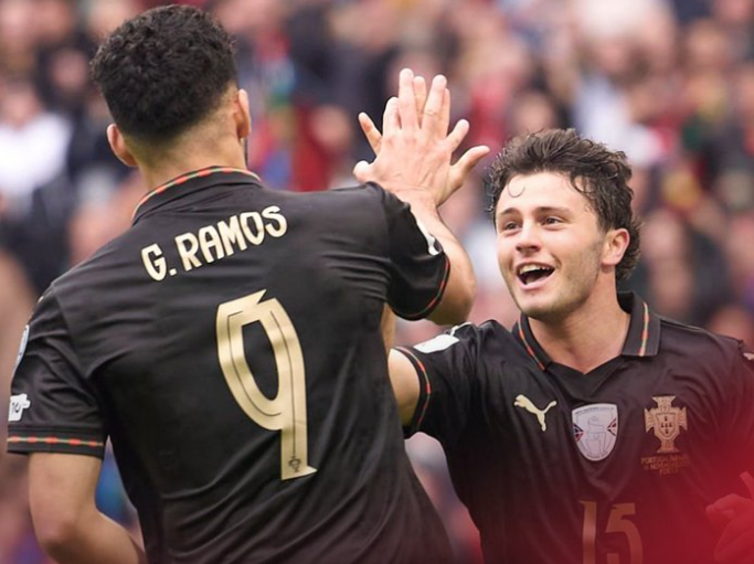 Овој погодок на гостите како да ги налути домашните фудбалери, па потоа следуваше гол-шоу. До крајот на првото полувреме Португалија стигна до 5:1 и тоа со двата гола на Жоао Невеш и по еден погодок на Рамос и Бруно Фернандеш од пенал.
