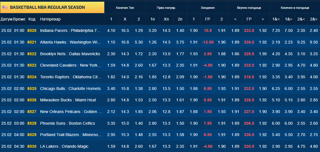 Кошаркарската НБА-лига за вечерва нуди богата програма од 11 натпревари, па и во понудата на Sport Life имате огромен број опции за обложување во врска со овие мечеви.