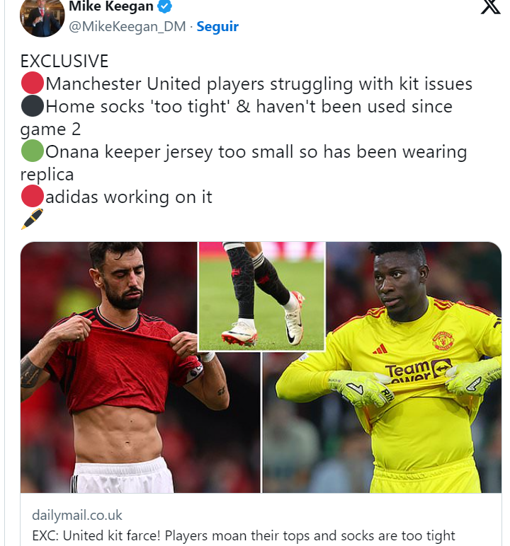 Некои од играчите на Јунајтед уште од второто коло не ги носат оригиналните чорапи кои им ги дал „Адидас“, а на голманот Андре Онана дресот му бил мал, па и тој морал да се снаоѓа и да брани со реплика наместо со оригинален дрес. Онана на мечот со Шефилд побара да му биде даден друг дрес.