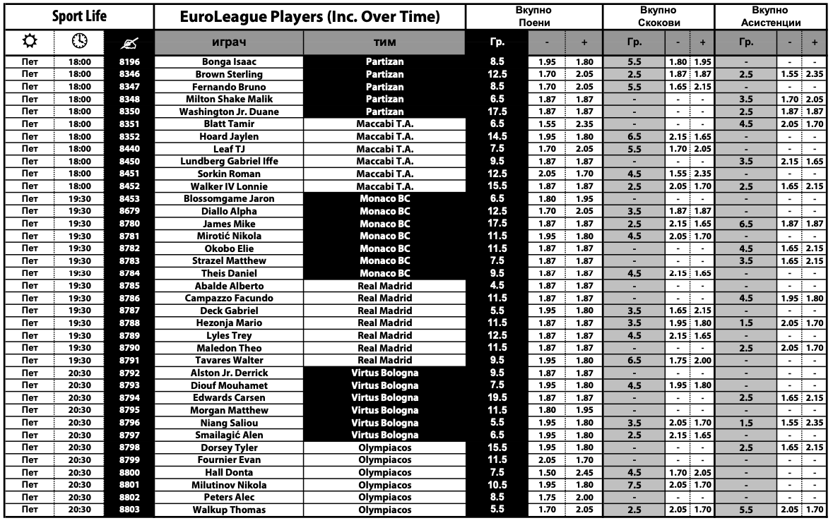 Во богатата евролигашка понуда се и кошаркарите со најпопуларната игра помеѓу играчите – „плус-минус“ на поени, скокови и асистенции. Комплетната понуда може да ја најдете на следниов ЛИНК.