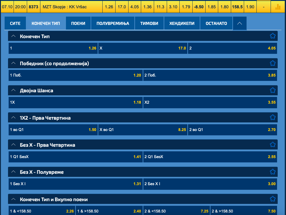Во СЦ „Јане Сандански“ вечерва од 20 часот гостува екипата на Вршац, а според квотите во Sport Life, Штрковите се големи фаворити со квота за победа од 1.26. МЗТ Скопје против овој противник има одиграно два натпревари во сезоната 2018/19, и тоа во истово натпреварување, и двапати победи, со девет поени на домашен терен и со седум разлика на гости.
