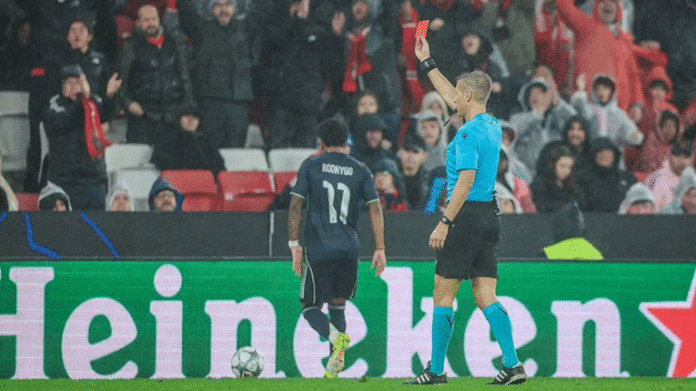 Родриго доби црвен картон во финишот на средбата токму со Бенфика, последна од лигашката фаза и долгиот јазик (упати остри зборови кон судијата) го чинеше прво исклучување откако е во првиот тим на Реал, поради кое доби суспензија од два меча.