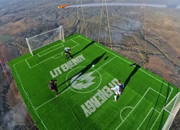 Серхеј Бојцов е познат како екстремен спортист од Русија кој прави неверојатни работи. Последниот негов предизвик кој го исполни, беше да заигра фудбал на 1.800 метри над земјиното тло, што преставува апсолутен светски рекорд.