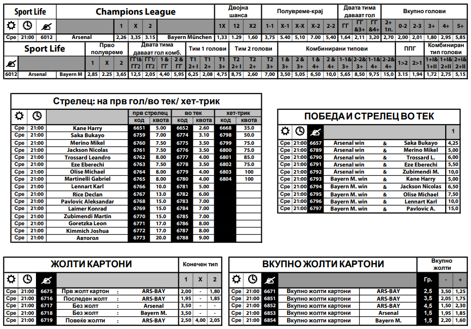Два натпревари посебно привлекуваат внимание во денешната понуда од Лигата на шампионите. Во дуел на перфектните, Арсенал е домаќин на Баерн Минхен. Овие екипи играа пред две сезони во четвртфиналето, кога дуелот во Лондон заврши 2:2, а потоа Баерн славеше дома со 1:0.