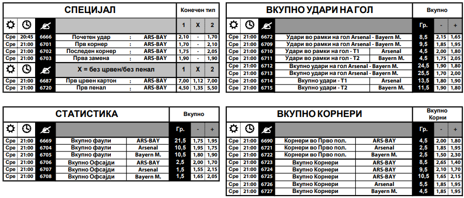 Одлични се комбинациите и на стрелец на погодок со победник на натпреварот, а тука се и комбинациите за статистичките податоци, како што се бројот на жолти картони, вкупно удари кон голот, вкупно удари во рамките на голот, вкупно фаули, офсајди, корнери…