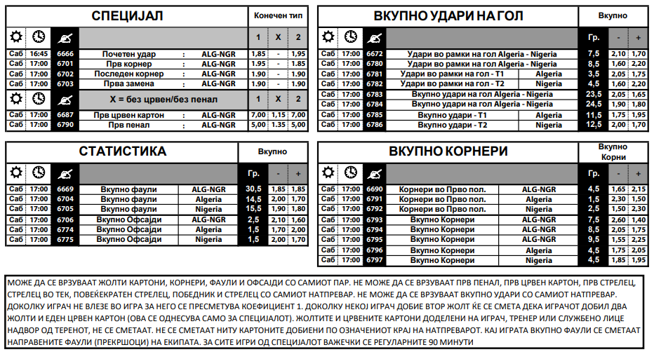 Како главен фаворит за стрелец на првиот гол е Виктор Осимен кај Нигерија, а Ријад Марез кај Алжир. Тука се и многуте игри за шутеви во рамките на голот, бројот на изведени корнери, покажани жолти картони, направени фаули, „уловени“ офсајди…