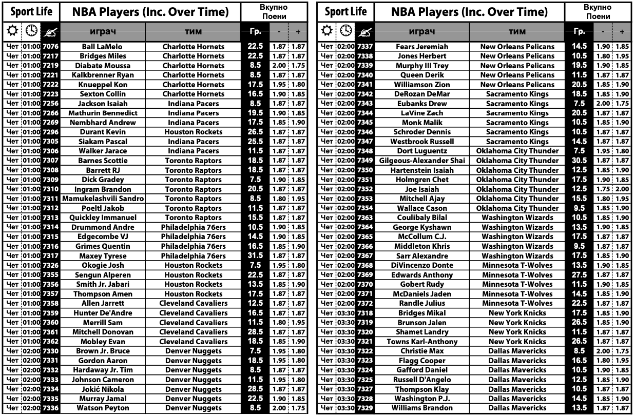 Богатата понуда на Sport Life за натпреварите од НБА-лигата содржи стотина кошаркари за најпопуларната игра помеѓу играчите – „плус-минус“ на поени. Комплетната понуда може да ја погледнете ТУКА.