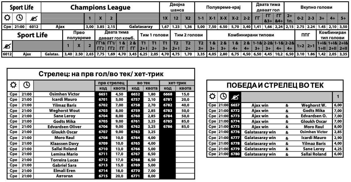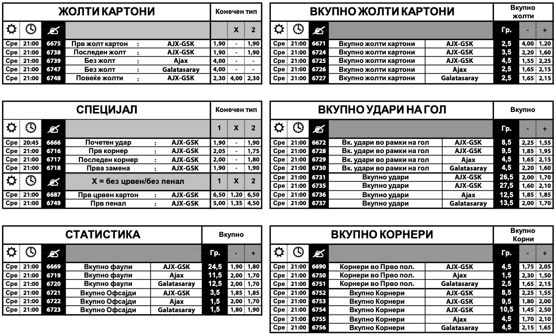 За мечот помеѓу Ајакс и Галатасарај може да се одигра и на многу статистички елементи, а комплетната понуда може да ја најдете ТУКА.