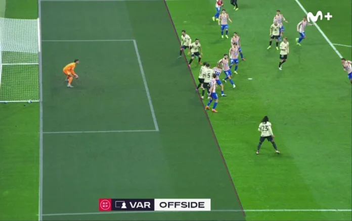 На фотографијата јасно се гледа дека линијата е погрешно нацртата и фудбалерот кој го постигнува голот не е во офсајд, а како последно проигрување е земен моментот кога топката се одбива од фудбалер на Атлетико Мадрид.