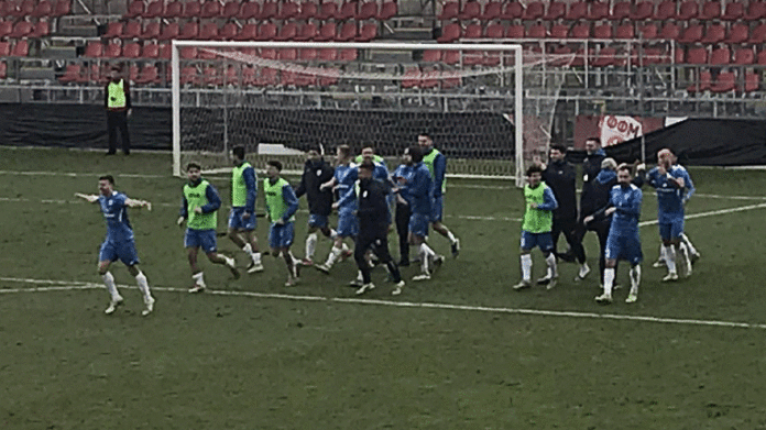 Лидерот на второлигашката табела го совлада Вардар на пенали со 4-2, откако во регуларниот дел средбата финишираше со 1-1. Вардарци поведоа со гол на Николов, но охриѓани изедначија преку Матески во 91-ва минута и се изборија за пенал серија во која гостинскиот голман им ги одбрани шутевите на Бобан Николов и Данев.