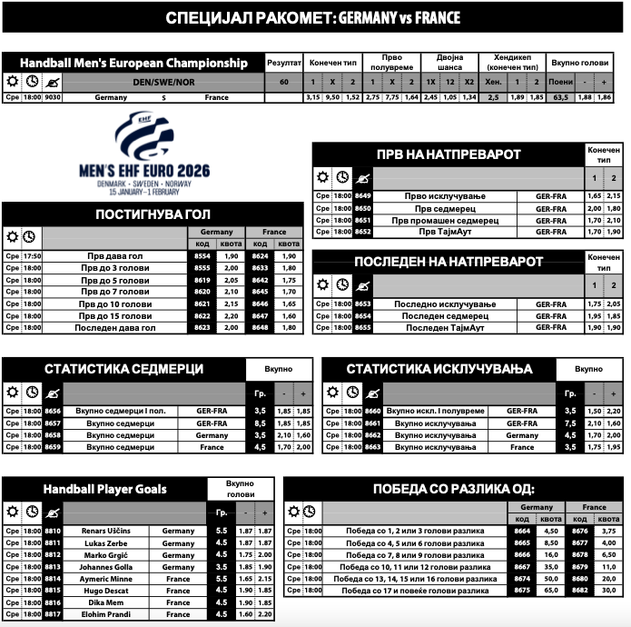 Двете селекции во меѓусебен дуел ќе одлучуваат, а фаворитската улога според квотите во Sport Life ја имаат „триколорите“.