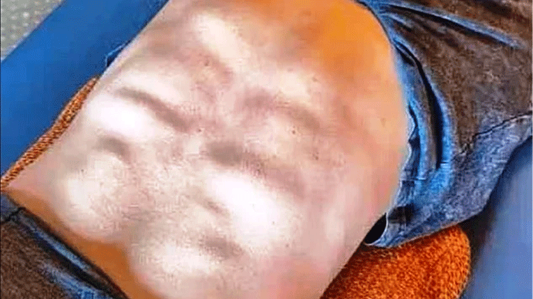 Јасно се гледаат екстремно дефинирани мускули на грбот, какви обично има на стомакот, но во нејзиниот случај се наоѓаат на грбот.