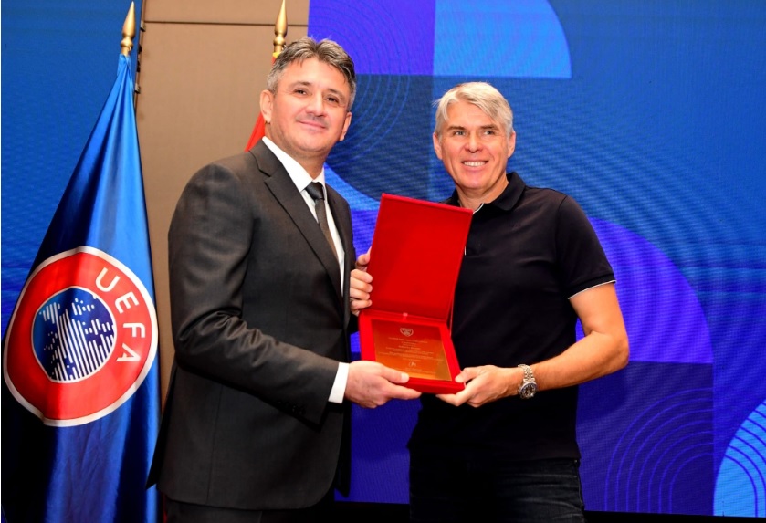 Пред присутните се обрати и шефот на судиите на УЕФА, Роберто Росети, кој испрати јасна и мотивирачка порака до македонските судии.