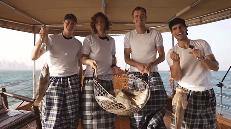 Во пресрт на мечевите на турнирот во Доха од АТП 500 серијата, тениските ѕвезди Карлос Алкарас, Јаник Синер, Данил Медведев и Андреј Рубљов имаа натпревар во морски риболов.