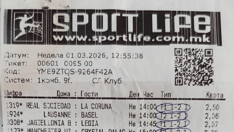 Првиот ден од март му донесе голема заработка на обложувач кој во Sport Life во Гостивар уплатил само 30 денари, а точно погоди девет исходи на фудбалски натпревари и тоа му донесе бруто-добивка од речиси 100.000 денари.