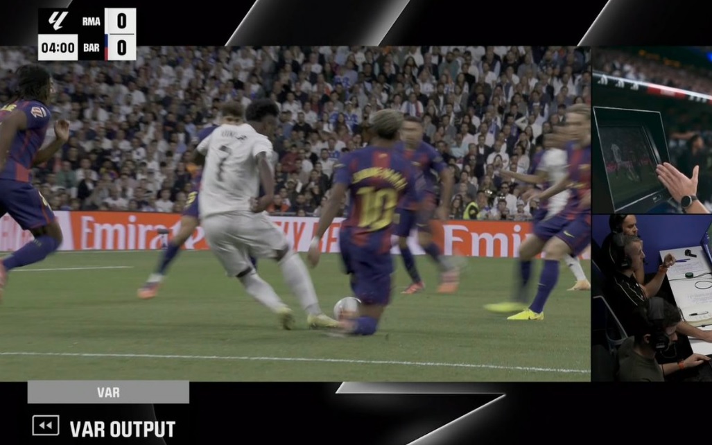 Ел Класико почна на спектакуларен начин. Уште во третата минута беше досуден пенал за Реал Мадрид. Судијата Сезар Сото Градо не размислуваше премногу при стартот на Ламин Јамал над Винисиус јуниор во шеснаесетникот на Барселона.