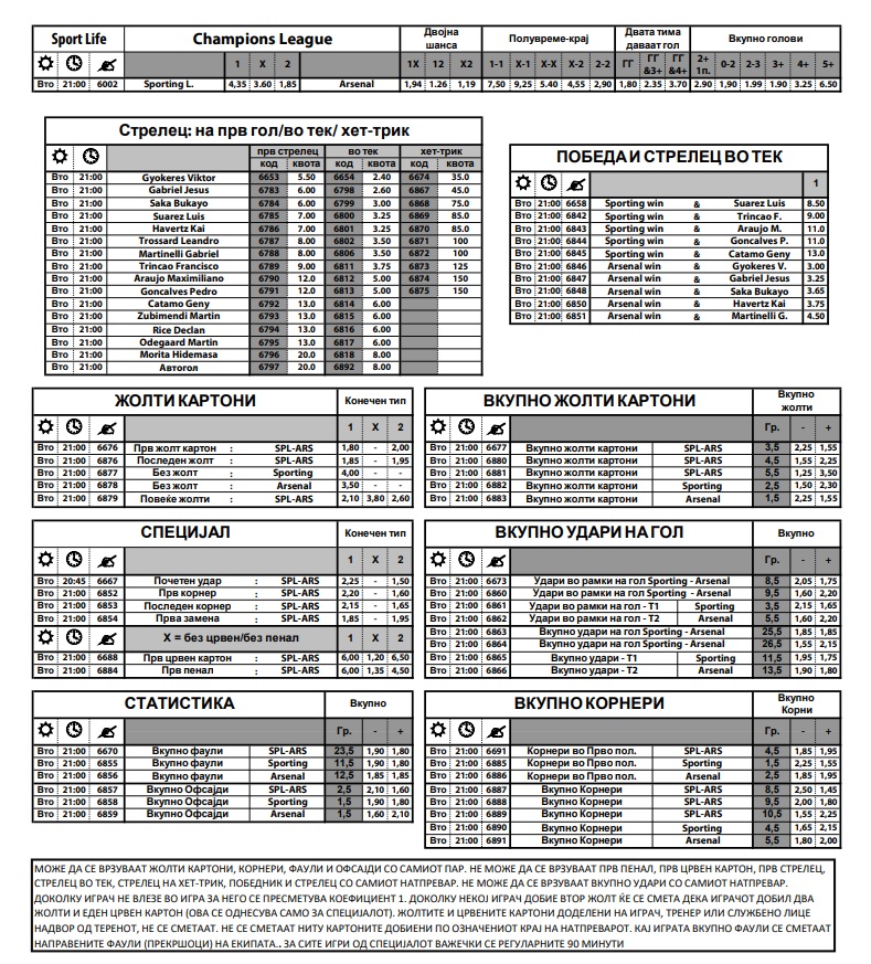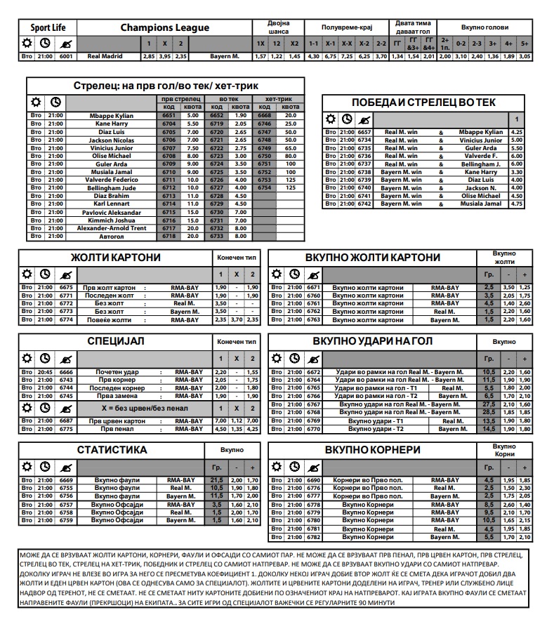 Лигата на шампионите повторно го окупира вниманието на фудбалската јавност ширум Европа. Гигантскиот дуел ќе се игра на „Бернабеу“, каде што се среќаваат Реал Мадрид и Баерн Минхен, а вториот меч се игра во Лисабон, каде што Спортинг ќе го пречека Арсенал.