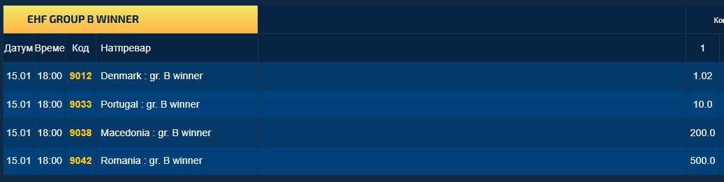 И квотите во Sport Life за победник во групата Б велат дека главен фаворит е Данска пред Португалија, а Македонија и Романија се аутсајдери на хартија. Во втората фаза одат двете најдобри селекции и ова покажува дека пред нашите е исклучително тешка задача.