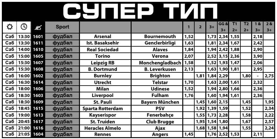 Кога има 16 фудбалски натпревари со по пет зголемени квоти на фаворитите кај секој од тие мечеви, јасно е дека Супер тип понудата на Sport Life не смее да се заобиколи денеска.
