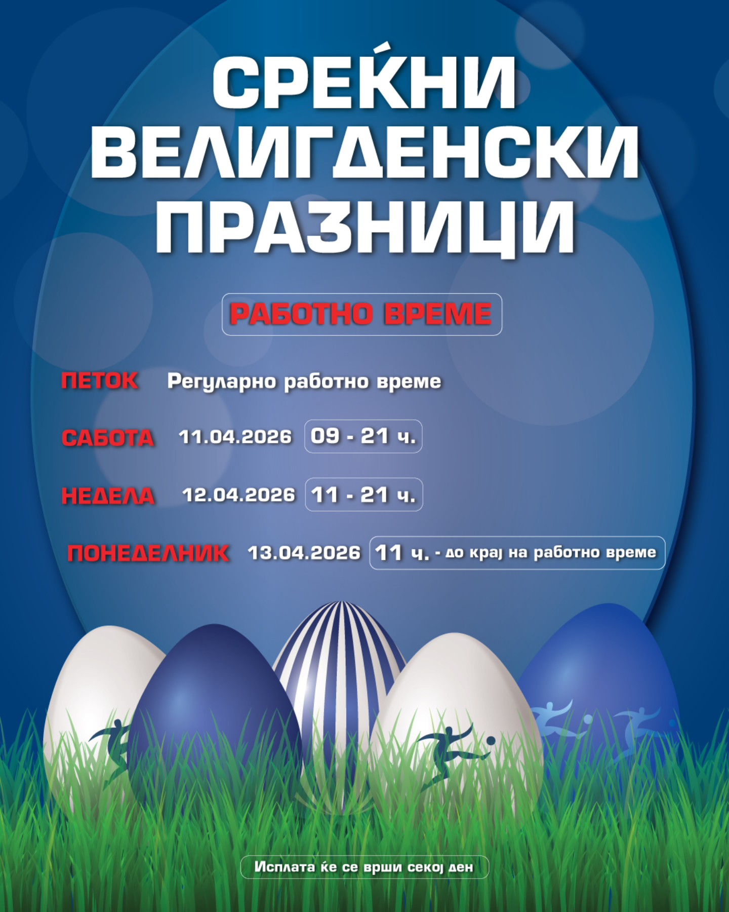 Исплата ќе се врши секој ден.