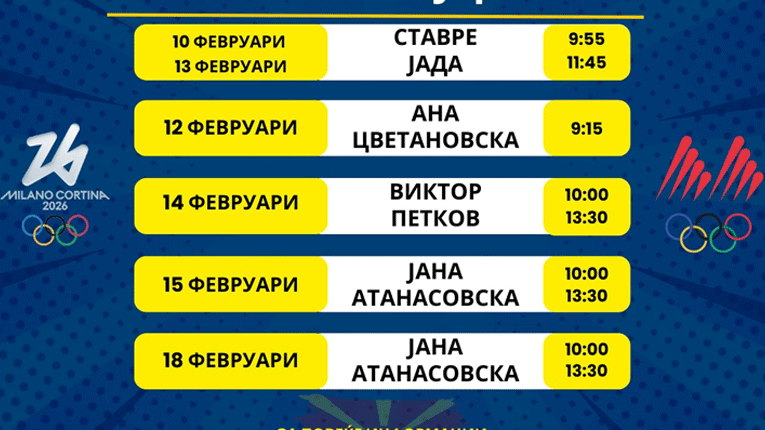 Македонскиот олимписки комитет го објави официјалниот календар на настапи за нашите олимпијци на Игрите во Милано и Кортина.