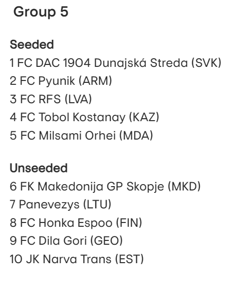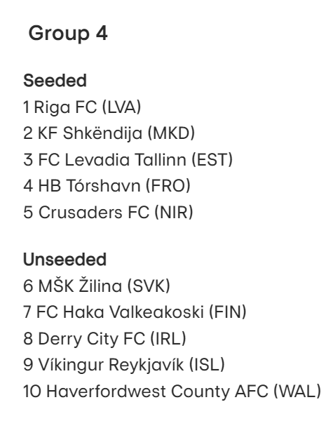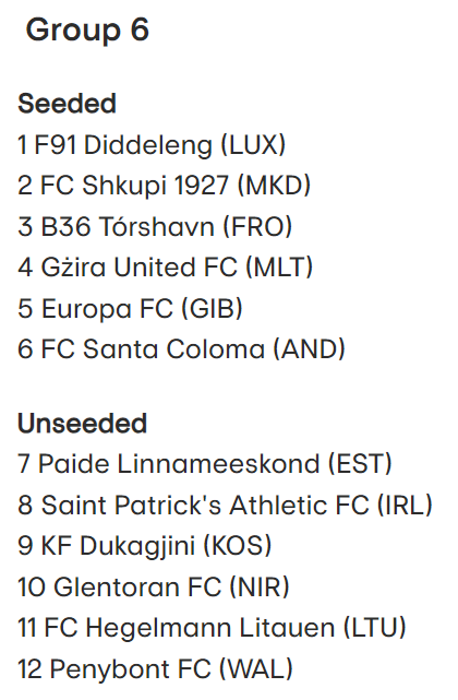 Шкупи за ривал ќе добие една од следните екипи: Паиде (Естонија), Сент Патрик (Реп. Ирска), Дукаџини (Косово), Гленторан (Северна Ирска), Хегелман (Литванија) или Пенибонт (Велс).
