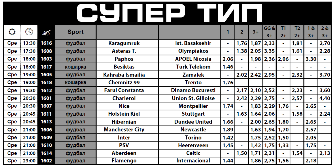 Четиринаесет фудбалски и два кошаркарски натпревари се најдоа во Супер тип 16-ката на Sport Life, каде што има многу зголемени квоти со кои може да си ја подобрите потенцијалната добивка.