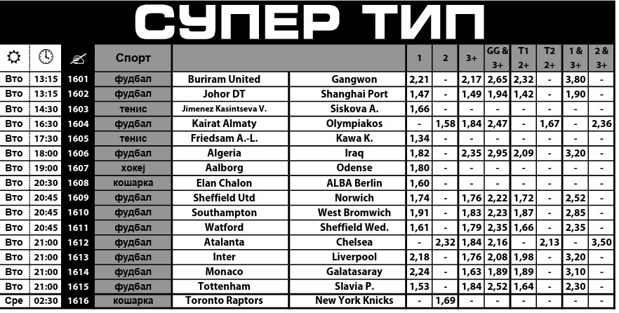 Разновидна е денешната Супер тип понуда на Sport Life, а тоа ја прави привлечна и атрактивна за многумина играчи кои сакаат да си ја подобрат потенцијалната добивка на тикетите со некој од многуте џокери со зголемени квоти.